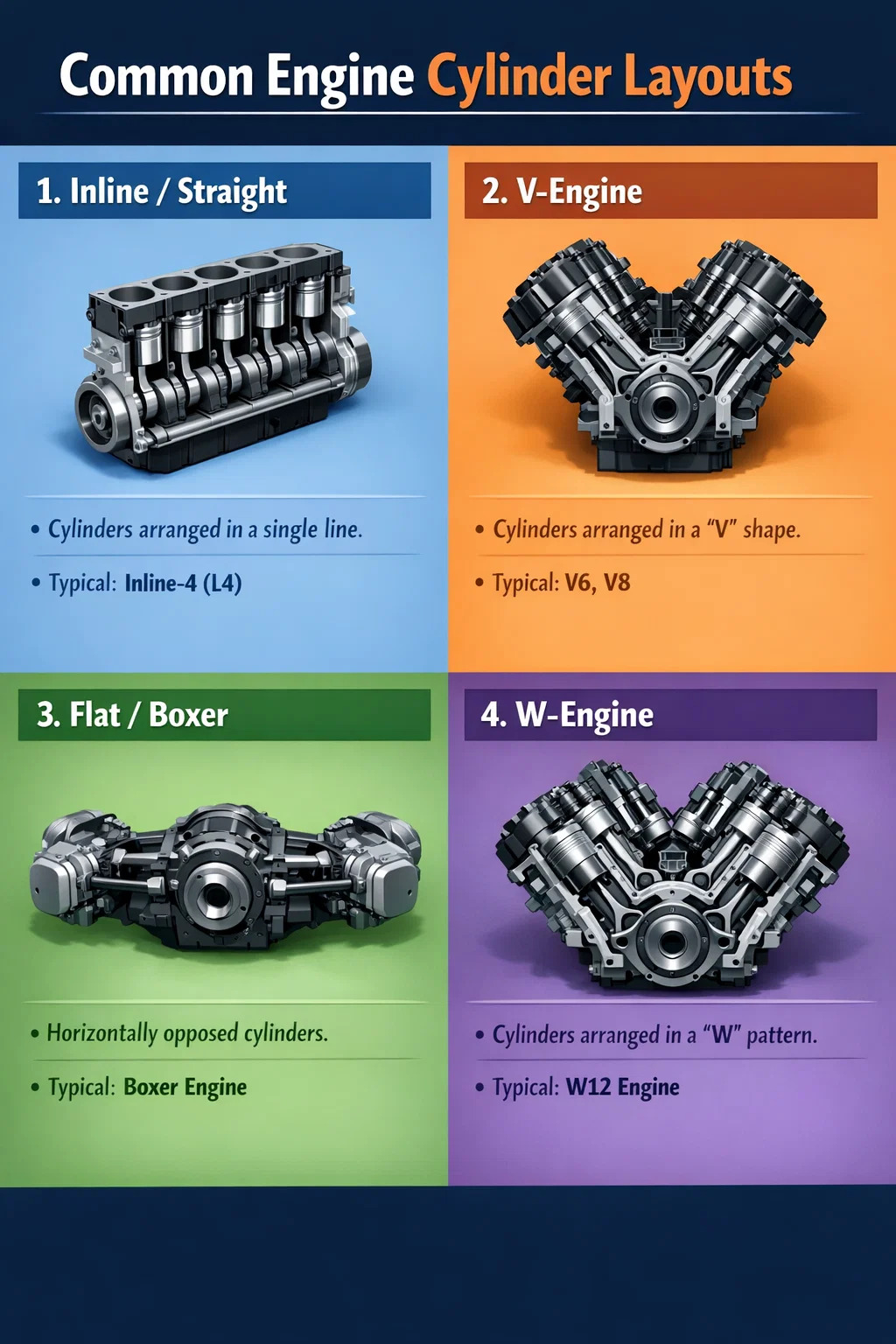 Polttomoottoreiden maailmassa sylinterien järjestely määrää suoraan ajoneuvon luonteen, tehon ja tilantarpeen. Sylinterin sijoittelu on tärkeä näkökohta sekä henkilöautoissa että korkean suorituskyvyn ajoneuvoissa.
