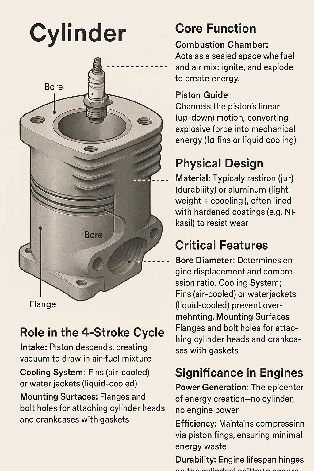 Materiaali: Tyypillisesti valurautaa (kestävyys) tai alumiinia (kevyt jäähdytys), usein vuorattu kovettuneilla pinnoitteilla (esim. Nikasil) kulumisen estämiseksi.